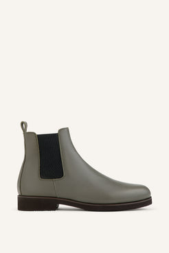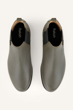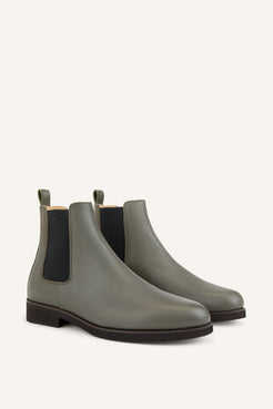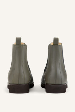 The Redford is our modern interpretation of a classic Chelsea—sleek, understated, and effortlessly wearable. This women’s edition is crafted entirely in military green calf, offering a clean, uninterrupted silhouette with a subtle sheen and refined depth of color.