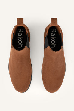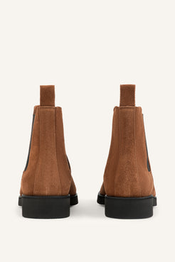 The Redford is our modern interpretation of a classic Chelsea—sleek, understated, and effortlessly wearable. This men’s edition is crafted entirely in sienna suede, a mid-light brown tone that adds depth and quiet sophistication to the silhouette. The matte finish keeps the lines clean and relaxed while maintaining an elevated character.